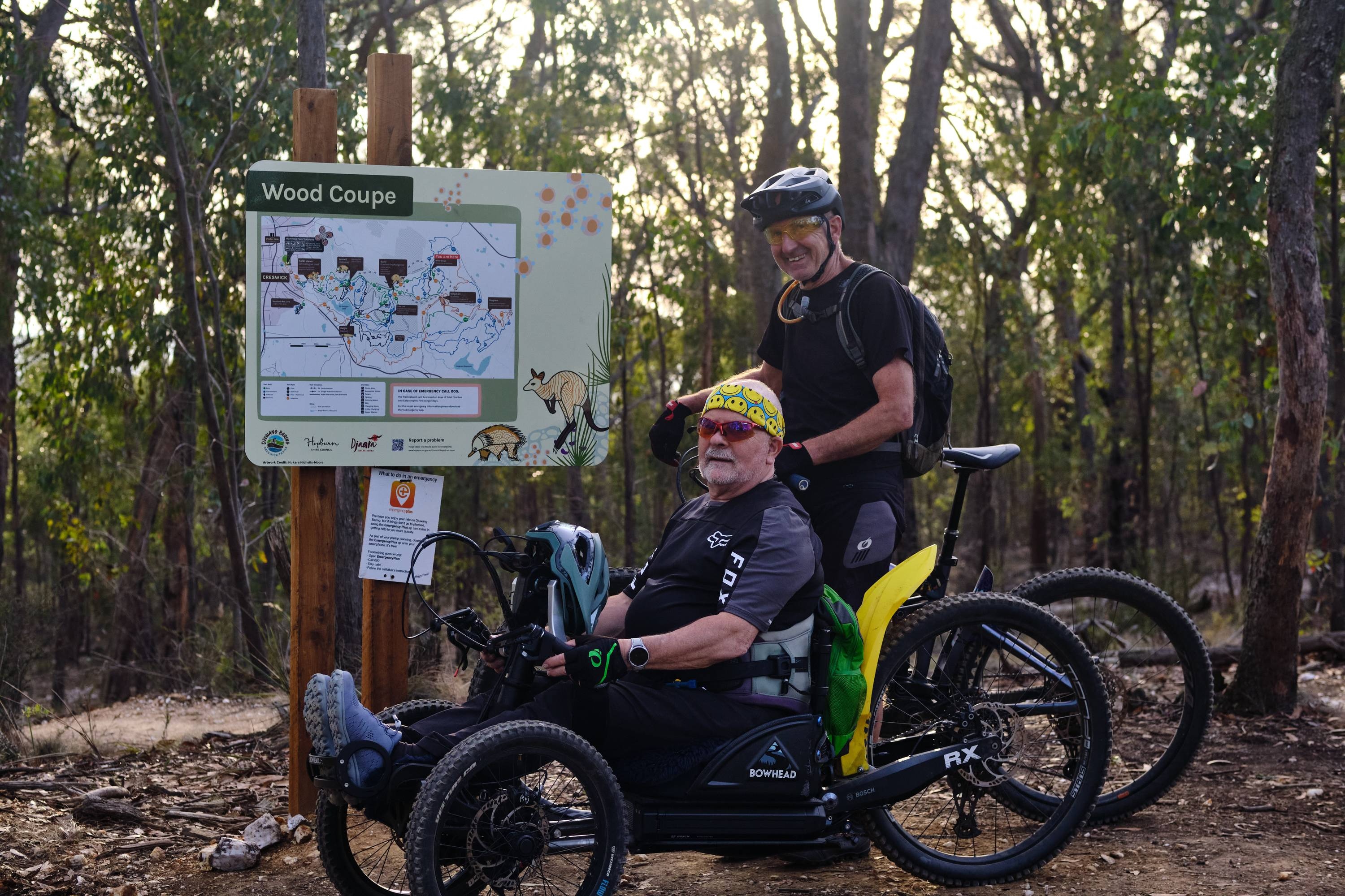 Located in the gold rush era town of Creswick, a scenic 20-minutes’ drive from Ballarat, Djuwang Baring offers an unparalleled experience for beginner to advanced riders across a 60km trail network. Completed in late 2024, 30% of the trails in the network are suitable for adaptive mountain biking (sometimes referred to as off-road para-cycling).
